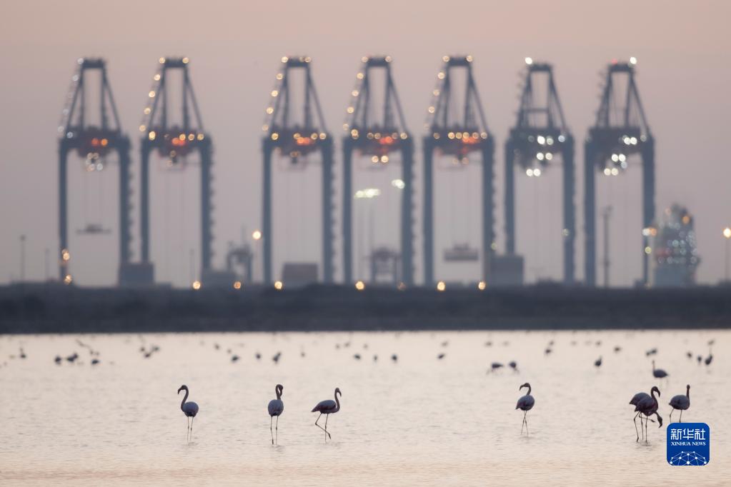 這是12月12日在埃及塞得港省福阿德港自然保護區拍攝的火烈鳥。