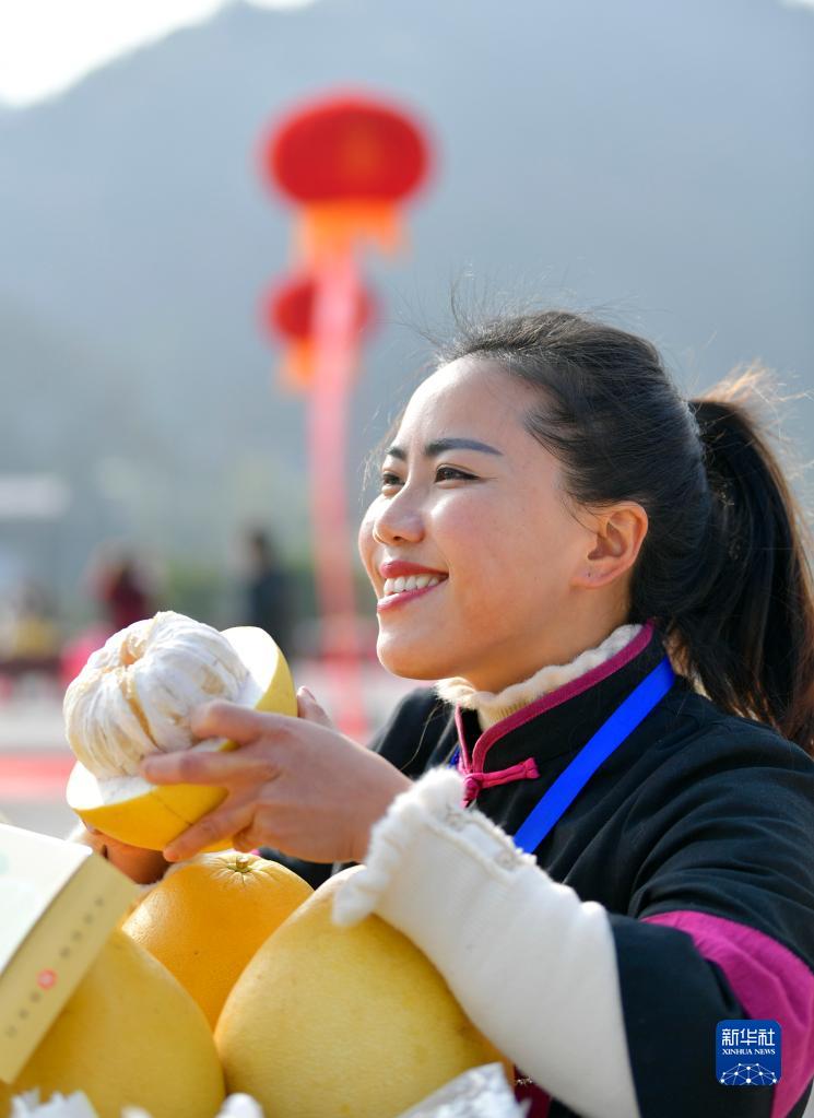 眼下,湖北省恩施土家族苗族自治州宣恩縣特產(chǎn)、國家地理標(biāo)志產(chǎn)品貢水白柚成熟上市。當(dāng)?shù)匮埦W(wǎng)絡(luò)主播舉辦線上直播銷售擂臺(tái)賽,助力貢水白柚外銷。