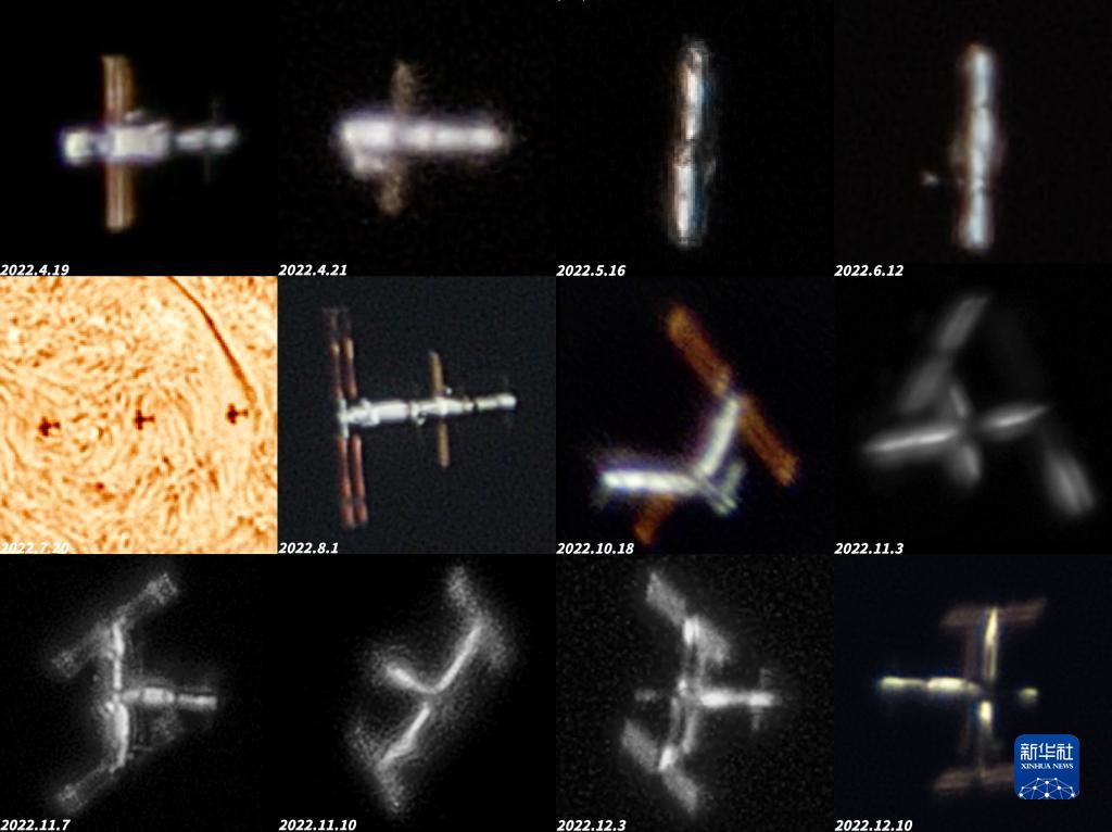 自2022年4月以來中國空間站建造階段的若干不同構型(拼版照片)。