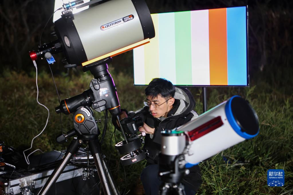 9月21日凌晨,劉博洋在北京密云架設拍攝設備,準備拍攝當日過境北京的中國空間站。