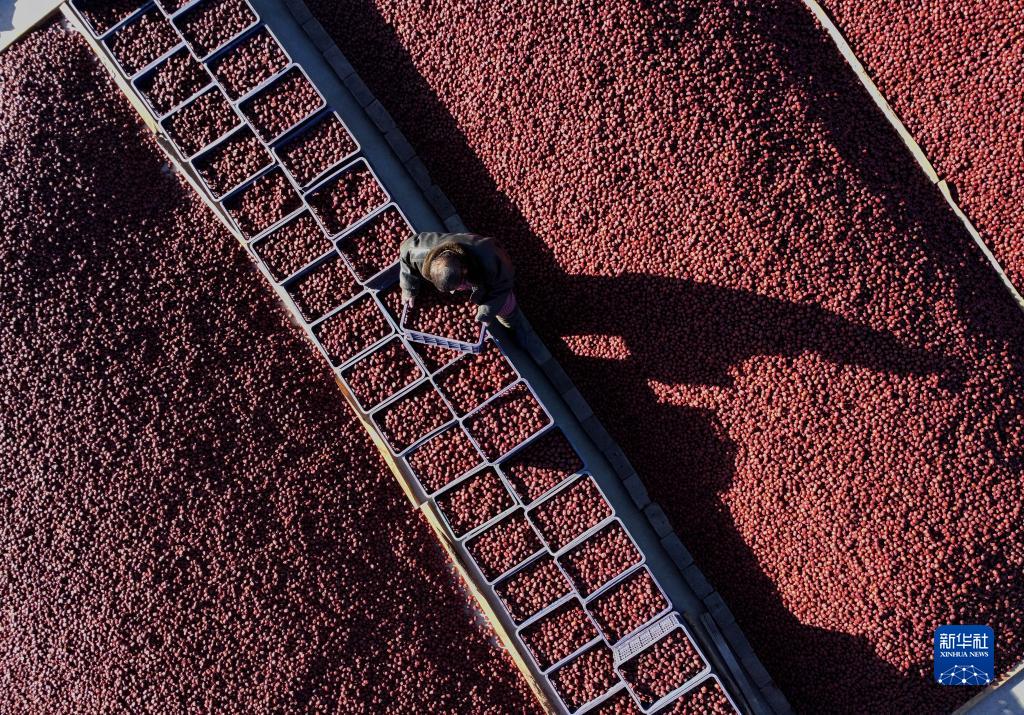 連日來,河北省石家莊市行唐縣大棗種植戶利用晴好天氣對大棗進行晾曬、篩選,供應市場。近年來,行唐縣政府引導當地群眾利用丘陵和淺山區地帶種植優質大棗樹,促進農民增收。