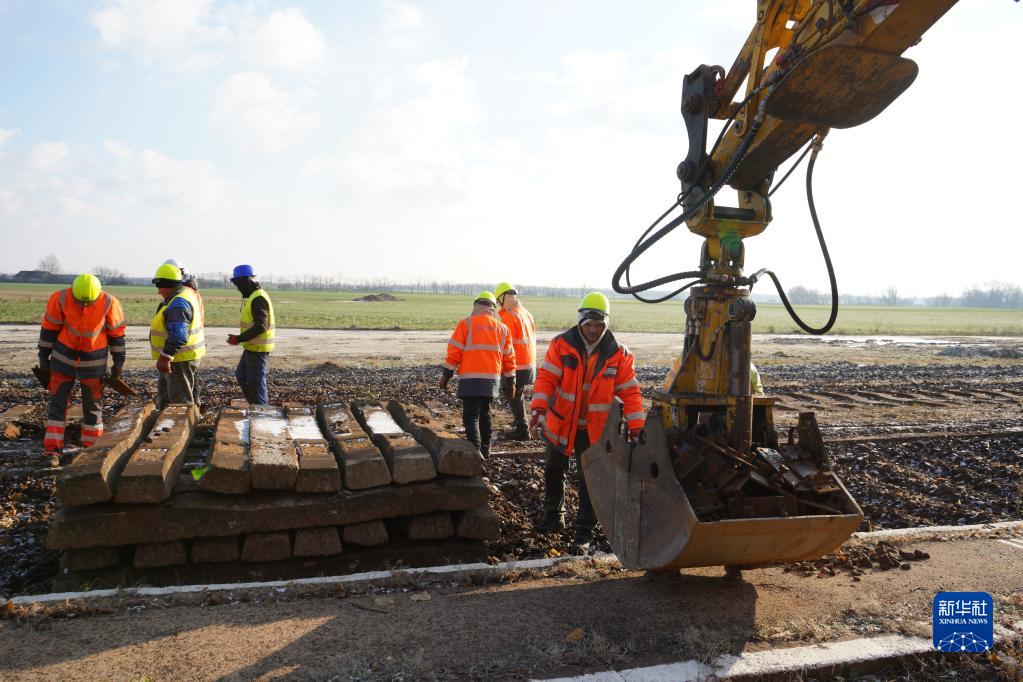 這是12月12日在匈牙利陶克紹尼拍攝的匈塞鐵路匈牙利段施工現(xiàn)場。