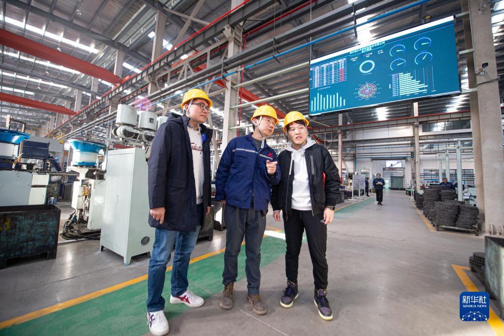 12月14日,浙江恒久傳動科技股份有限公司負(fù)責(zé)人(中)在企業(yè)生產(chǎn)車間內(nèi)與陶朱街道駐企指導(dǎo)員交流企業(yè)生產(chǎn)經(jīng)營情況。