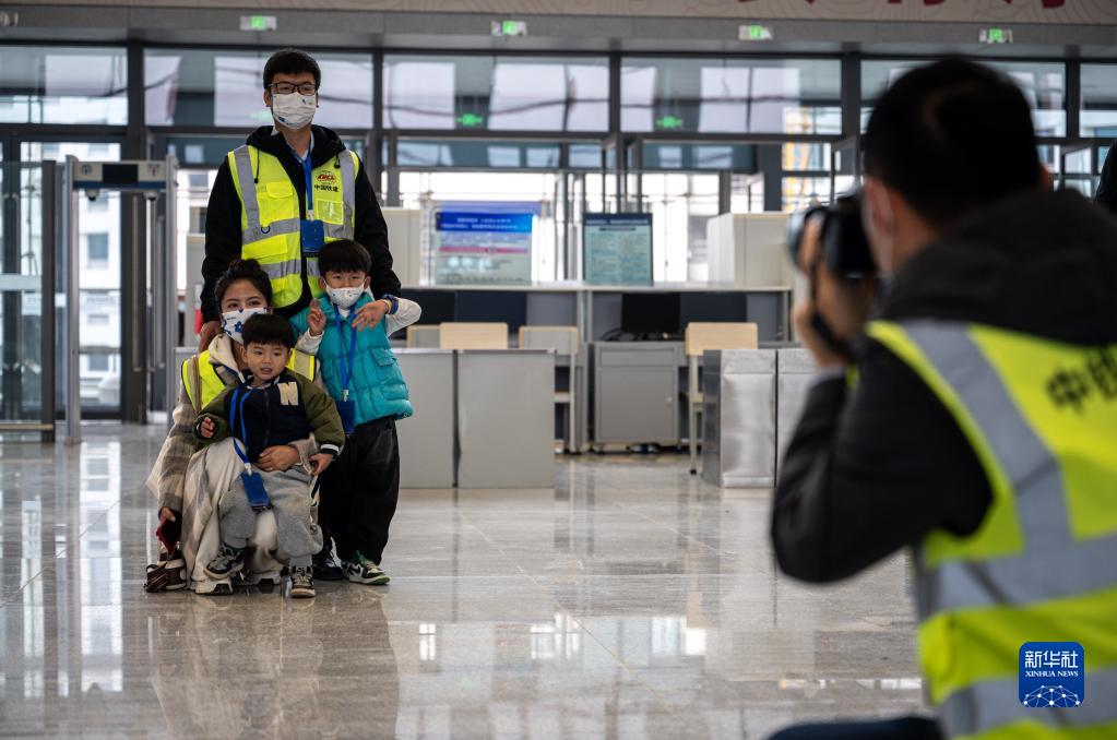 12月14日,鐵路建設者及家屬在彌蒙高鐵紅河站合影留念。