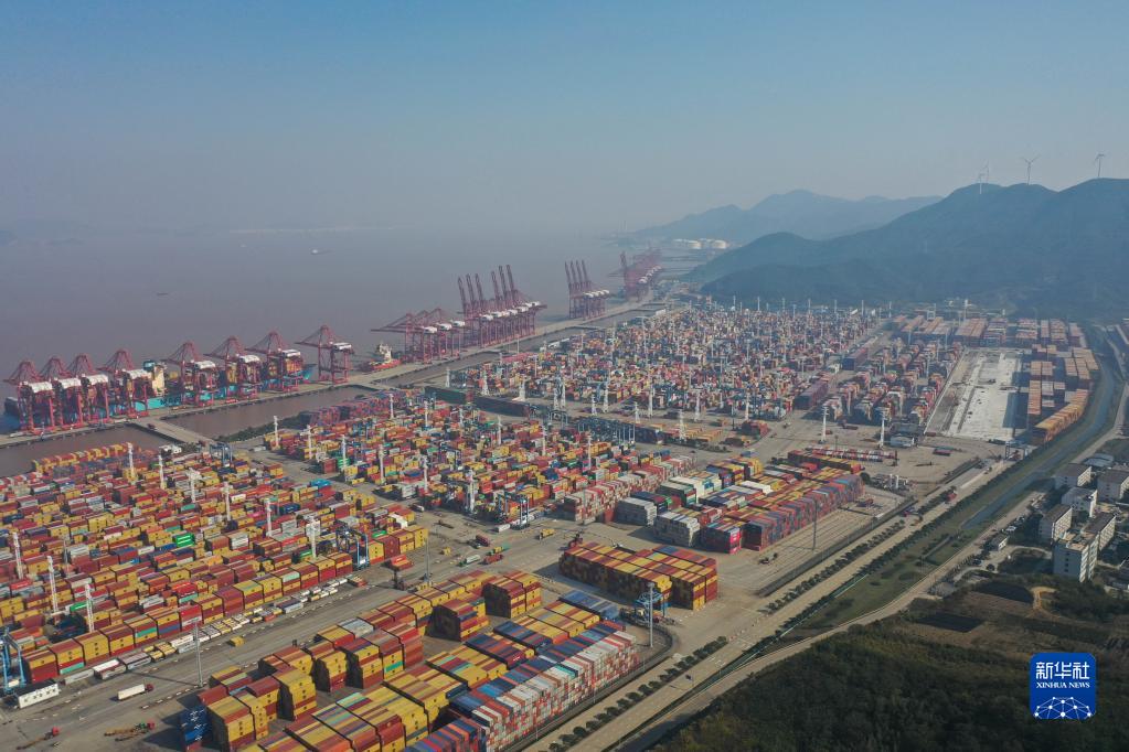 12月13日拍攝的浙江寧波舟山港穿山港區(無人機照片)。