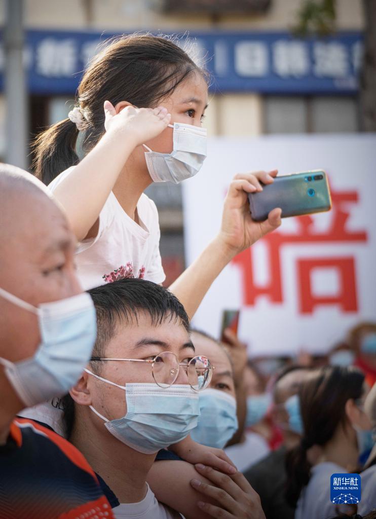 這是8月28日,在重慶市北碚區,一名小女孩向完成山火撲救任務后撤離的云南森林消防隊車隊敬禮。