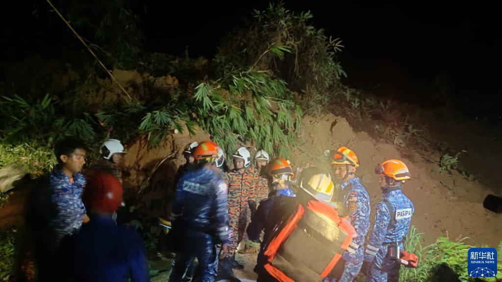 這張馬來西亞雪蘭莪州消防救援部門12月16日公布的照片顯示,救援人員在云頂高原附近的滑坡現(xiàn)場搜救。
