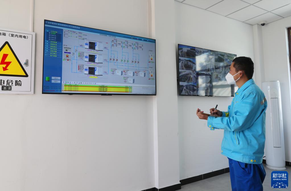 12月15日,一名工作人員在加氣站監(jiān)控室內(nèi)記錄設(shè)備運行情況。