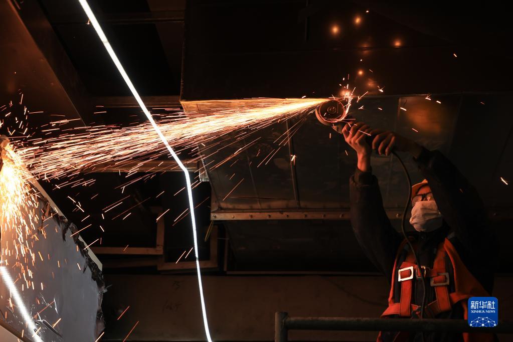 12月16日,中鐵五局建設者在貴陽軌道交通三號線東風鎮站內切割鋼材。