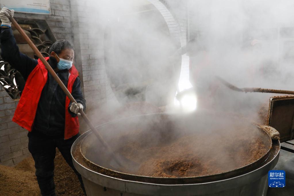 寒冬時節,河南省寶豐縣釀酒專業村石橋鎮邢莊村進入釀酒繁忙季。村里10余家釀酒作坊按照制曲、選料、蒸煮、攤晾、封窖等傳統古法工藝釀酒,鄉村里彌漫著濃郁的酒香。