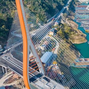 湖北省宜昌市香溪河上“琵琶形”獨塔斜拉橋主體結構基本建成,塔身采用順橋向傾斜10度的琵琶造型。香溪河因昭君出塞而得名,是長江的支流,從長江三峽西陵峽上游峽口匯入長江。該橋是連接宜昌市興山縣和秭歸縣的重點交通樞紐工程。