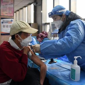 12月12日,在廣州市荔灣區(qū)廣鋼新城便民疫苗接種車上,醫(yī)務(wù)人員為老年居民接種新冠疫苗。