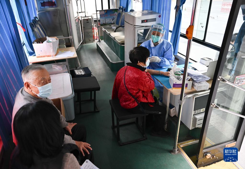 12月12日,在廣州市荔灣區(qū)廣鋼新城便民疫苗接種車上,老年居民在接種新冠疫苗。