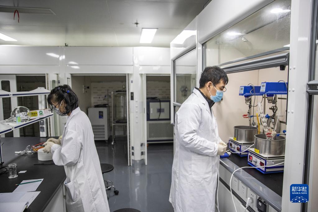 12月16日,在重慶市永川區(qū)新領先(重慶)生物醫(yī)藥一體化研發(fā)服務基地,新領先重慶研究院的研發(fā)人員在合成工藝實驗室觀察合成反應的現(xiàn)象變化。