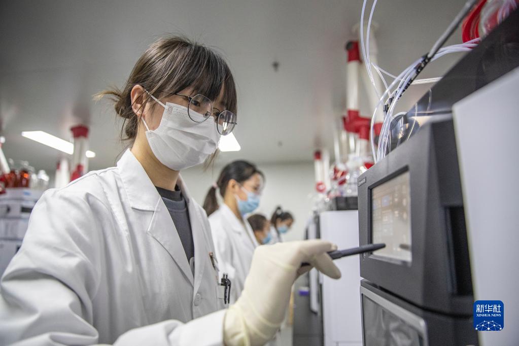 12月16日,在重慶市永川區新領先(重慶)生物醫藥一體化研發服務基地,新領先重慶研究院的研發人員在液相區對樣本進行色譜分析。