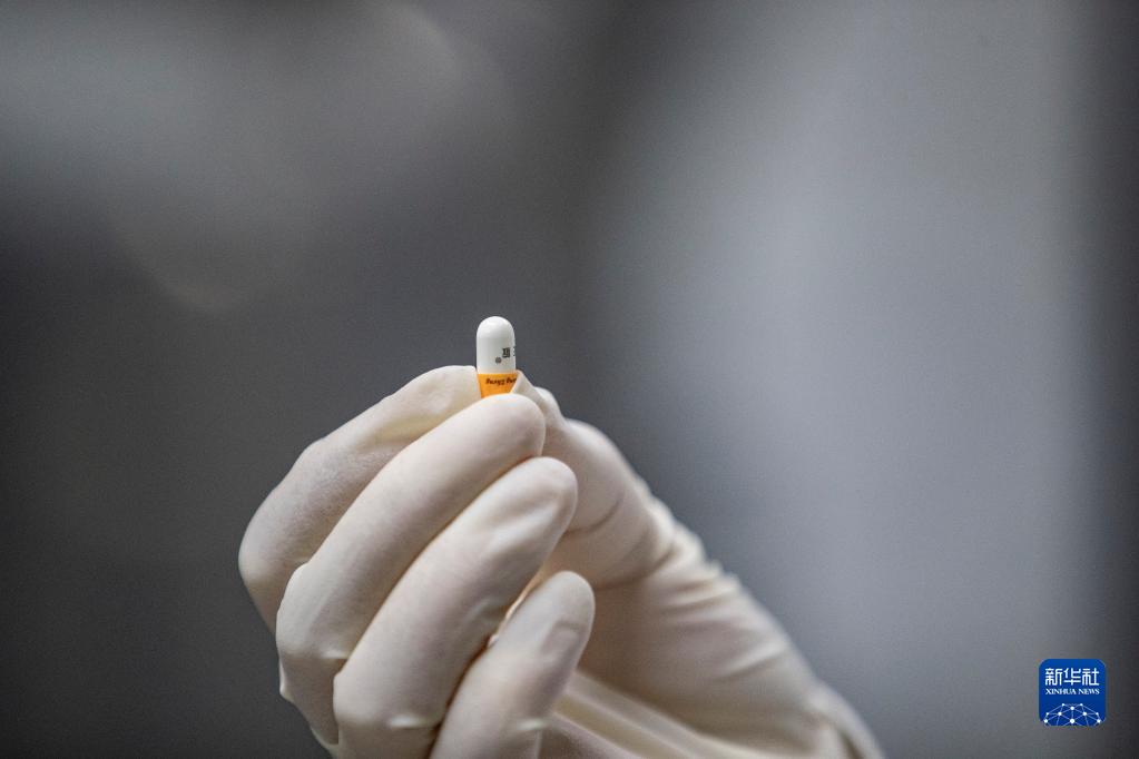 12月16日,在重慶市永川區(qū)新領(lǐng)先(重慶)生物醫(yī)藥一體化研發(fā)服務(wù)基地,新領(lǐng)先重慶研究院的研發(fā)人員查看全自動硬膠囊充填機制作的樣品膠囊藥。