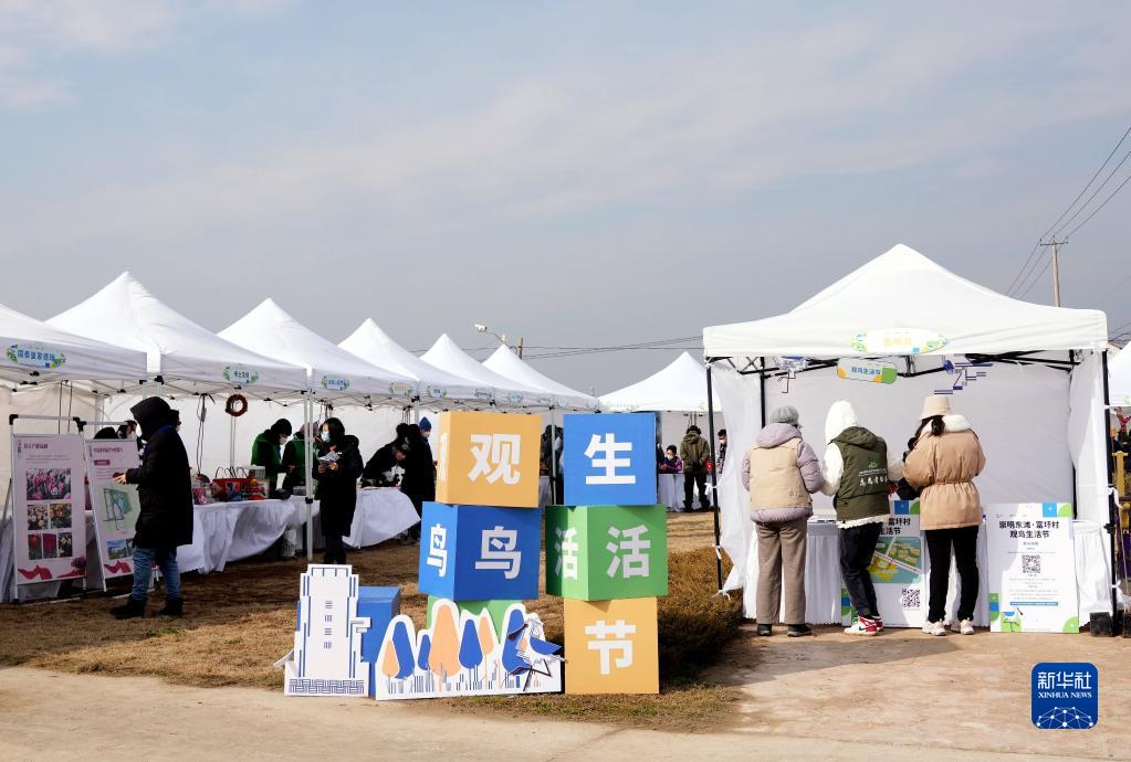12月17日在上海崇明富圩村拍攝的濱海社區觀鳥生活節生活集市現場。