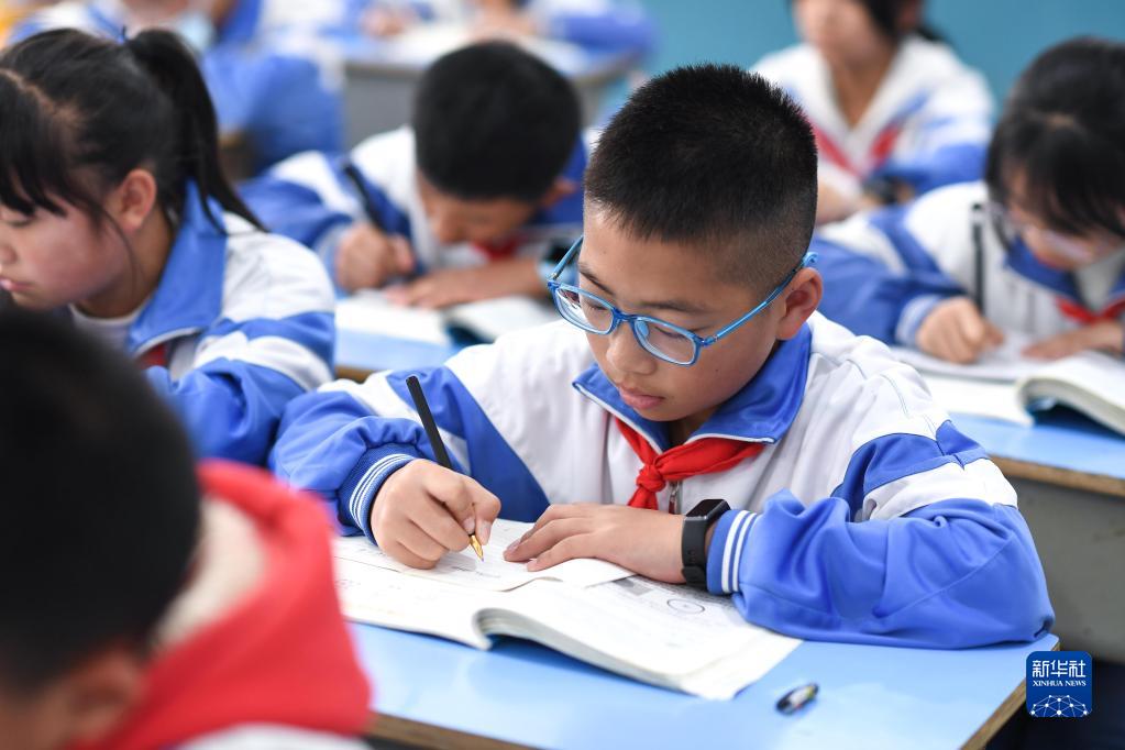 在貴州省丹寨縣城關(guān)第一小學(xué),金粲璨(前右)在課堂上學(xué)習(xí)(11月15日攝)。