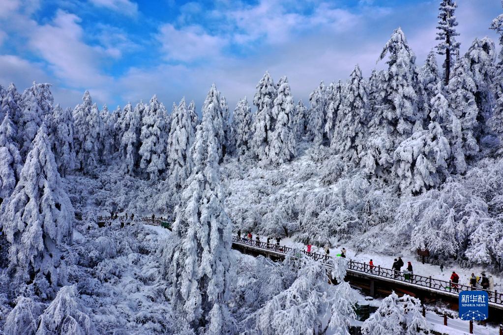 近日,位于四川省眉山市洪雅縣的瓦屋山迎來多場降雪,皚皚白雪將瓦屋山裝扮得銀裝素裹,宛如童話世界。