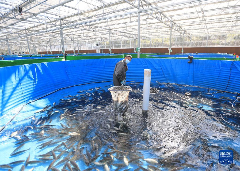 12月19日,在安吉縣天荒坪鎮的智能化養魚基地里,工人在打撈鮮魚,準備外銷。