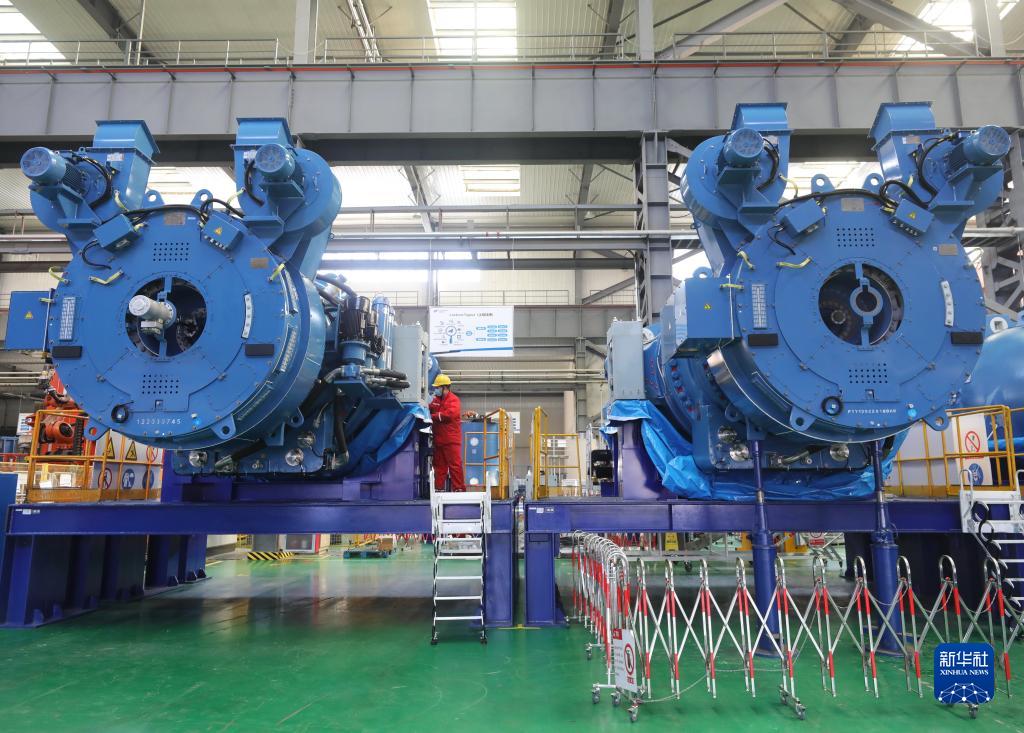2022年11月14日,工人在河北省張家口市經(jīng)濟(jì)開發(fā)區(qū)一家風(fēng)電設(shè)備制造企業(yè)的生產(chǎn)車間內(nèi)工作。