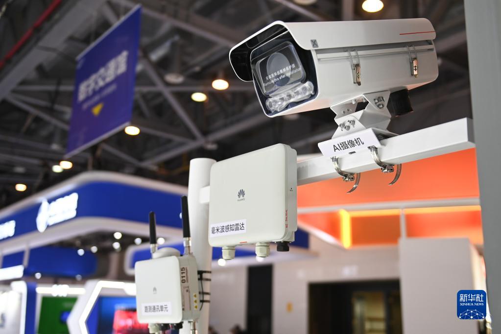 12月19日在華為公司展區拍攝的新型AI超微光電警卡口攝像機。據了解,該產品能高度還原車輛色彩,去除擋風玻璃彩色條紋,車內細節清晰呈現,幫助交警部門準確執法。