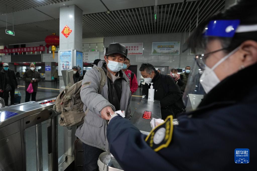 12月20日,在北京四惠長途客運站,前往河南南樂的旅客在檢票準備乘車。