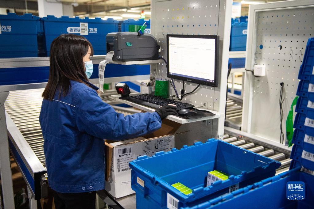 12月20日,在位于長沙市開福區的老百姓大藥房長沙物流中心,工作人員在登記入庫藥品信息。