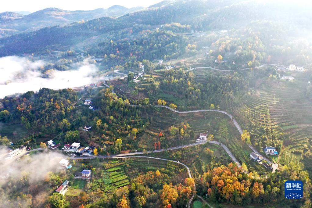 這是11月25日拍攝的湖北省宣恩縣的鄉村公路(無人機照片)。