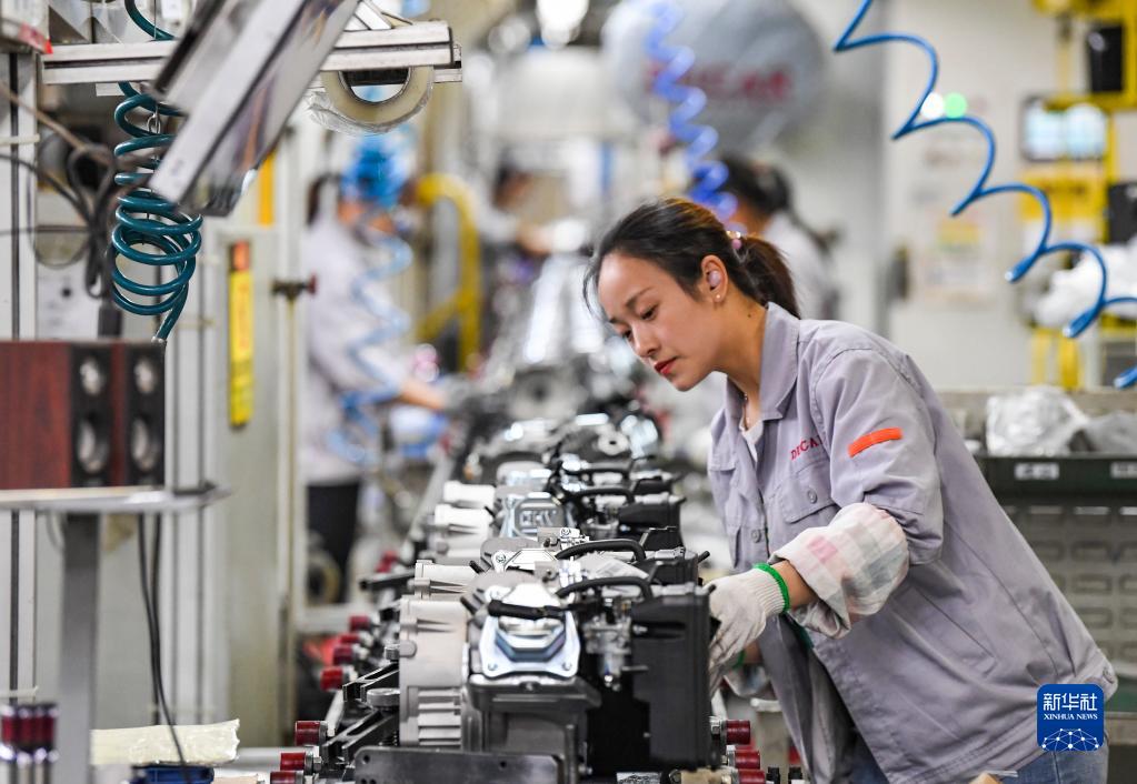 10月19日,在位于重慶市璧山區(qū)的一家動(dòng)力設(shè)備制造企業(yè),工人在生產(chǎn)車間作業(yè)。