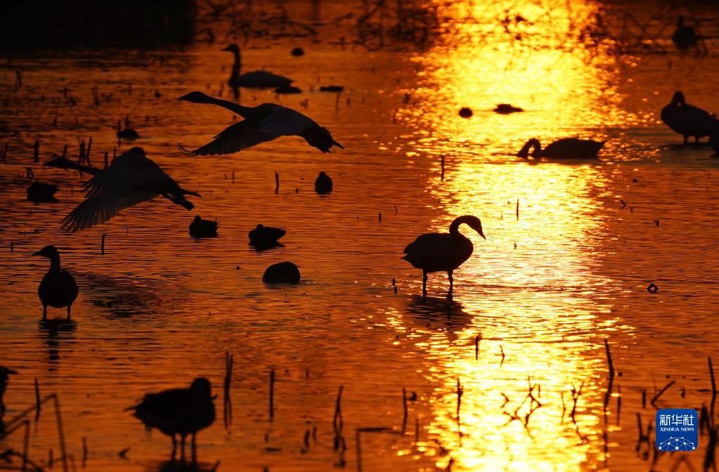 在鄱陽湖畔的五星白鶴保護小區,成百上千只候鳥歡快地嬉戲覓食,享受著鄱陽湖畔的冬日暖陽。鄱陽湖今年遭遇持續干旱,為保護越冬候鳥,愛鳥人士將候鳥常來的藕塘租下來,擴建五星白鶴保護小區,周邊的稻田也只種不收,留給候鳥作食物……這一系列舉措保障了候鳥在此棲息越冬。
