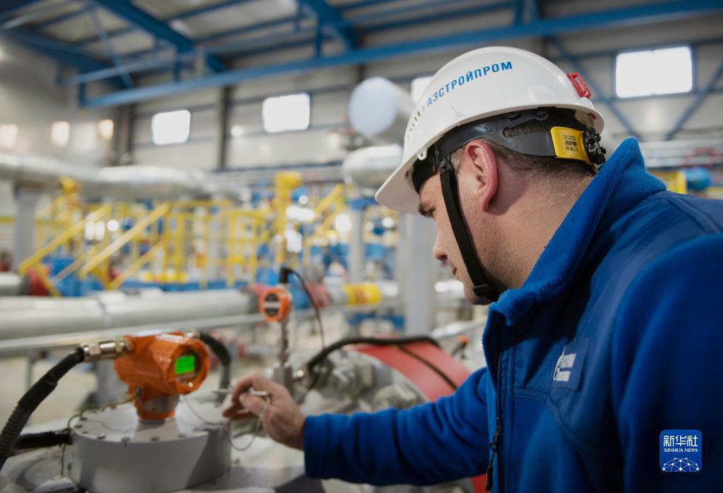 12月18日,在俄羅斯伊爾庫茨克州,工作人員在科維克塔天然氣氣田內(nèi)巡視設(shè)備。