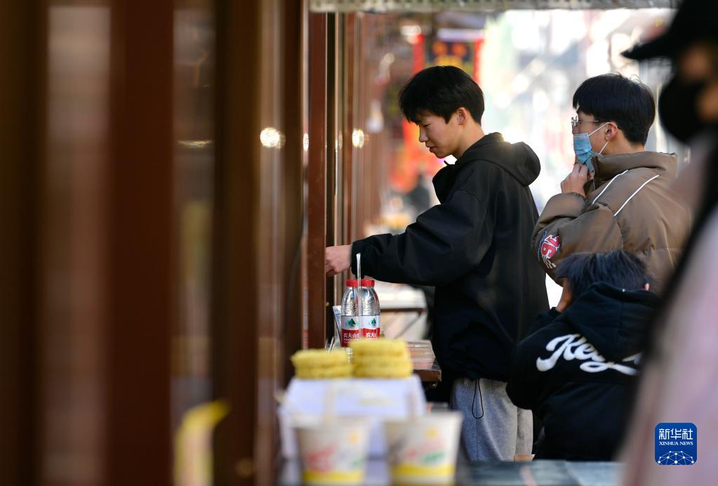 12月21日,在宣恩縣民族風(fēng)情街,市民在“地攤小屋”前購買食品。
