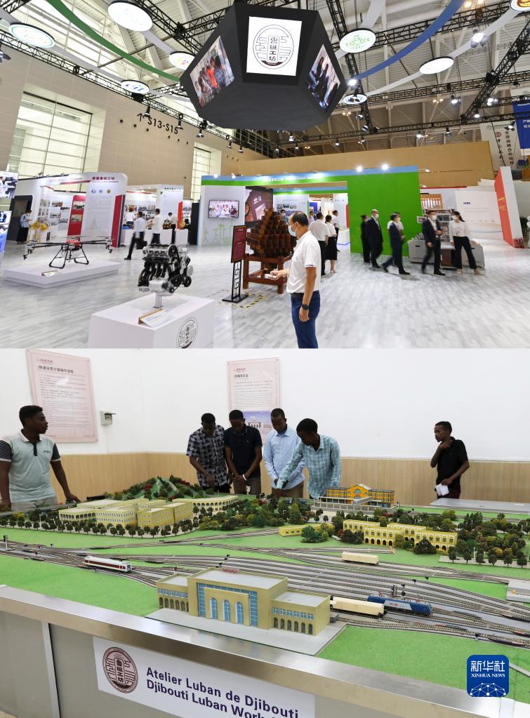 上圖:這是2022年8月19日在中國天津舉辦的世界職業教育產教融合博覽會上拍攝的魯班工坊建設·成果展。新華社記者 李然 攝