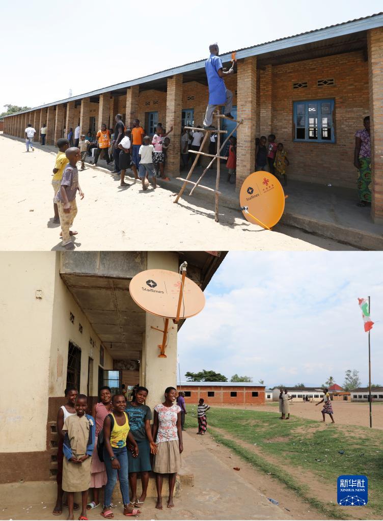 下圖:這是2022年10月31日在布隆迪布瓊布拉鄉(xiāng)村省穆蒂姆布齊一村莊拍攝的村民和衛(wèi)星電視接收器。新華社記者 董江輝 攝