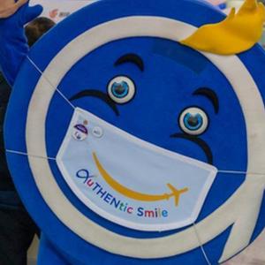 12月22日,在希臘雅典國際機(jī)場,一名旅客與機(jī)場吉祥物合影。