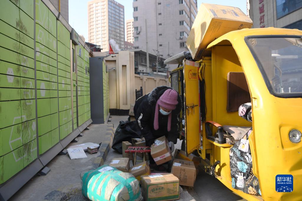 12月23日,在蘭州市城關區,一名快遞員在小區外派送快件。