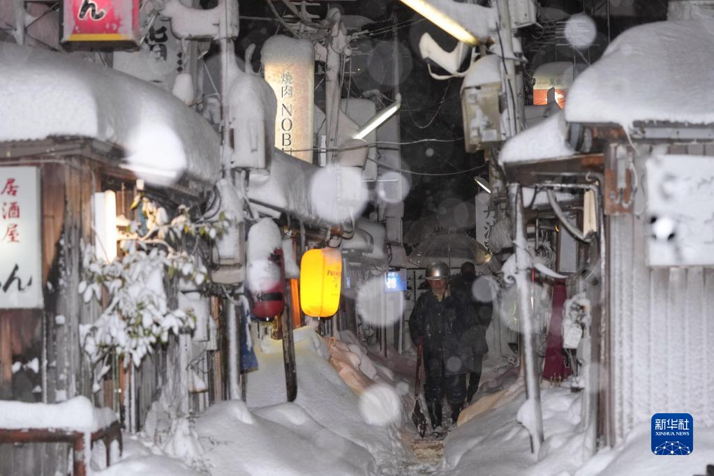 12月23日,行人在日本石川縣金澤市冒雪前行。