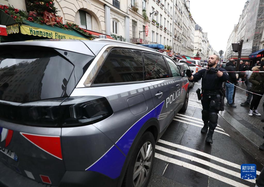 12月23日,警察在法國(guó)巴黎發(fā)生槍擊事件的街口警戒。