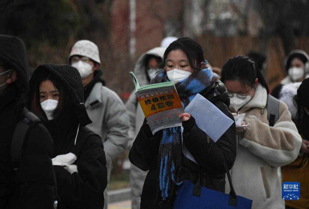 12月24日,在北京外國語大學考點,考生排隊準備進入考場。