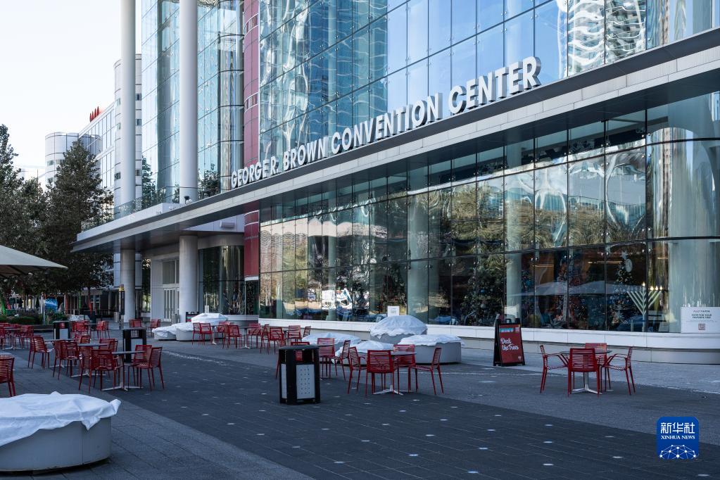 這是12月23日在美國休斯敦市拍攝的成為臨時供暖場所的喬治·布朗會展中心。