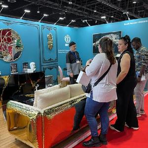 12月20日,在阿聯酋迪拜,采購商在第十三屆中國(阿聯酋)貿易博覽會上觀看展品。