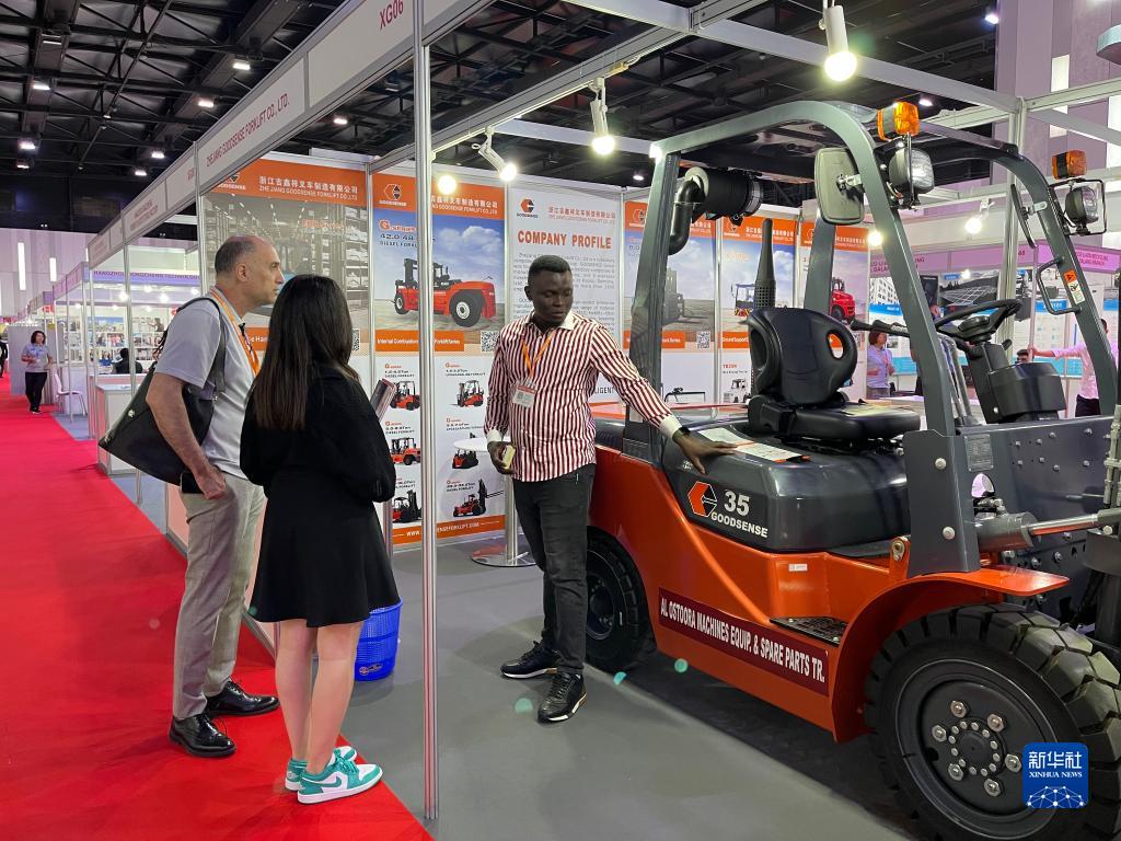 12月20日,在阿聯(lián)酋迪拜,采購商在第十三屆中國(阿聯(lián)酋)貿(mào)易博覽會上觀看展品。
