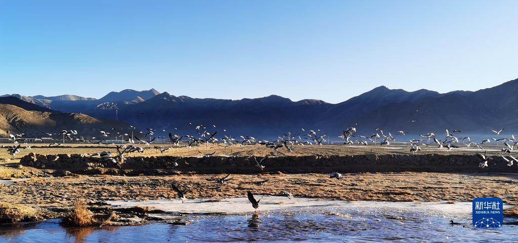 冬至過后,雪域高原進入一年中最寒冷的時段。在雅魯藏布江畔、拉薩河谷、高原湖泊和廣袤的田野里,大批越冬的候鳥自由自在覓食、翱翔,黑頸鶴、斑頭雁、赤麻鴨等候鳥的叫聲此起彼伏,在寒冬里奏響和諧生態交響曲。