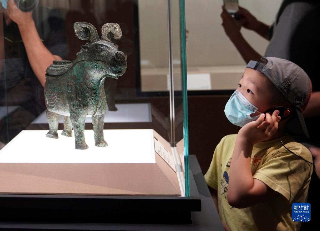 2022年7月30日,小觀眾在上海博物館舉行的“宅茲中國——河南夏商周三代文明展”上參觀。