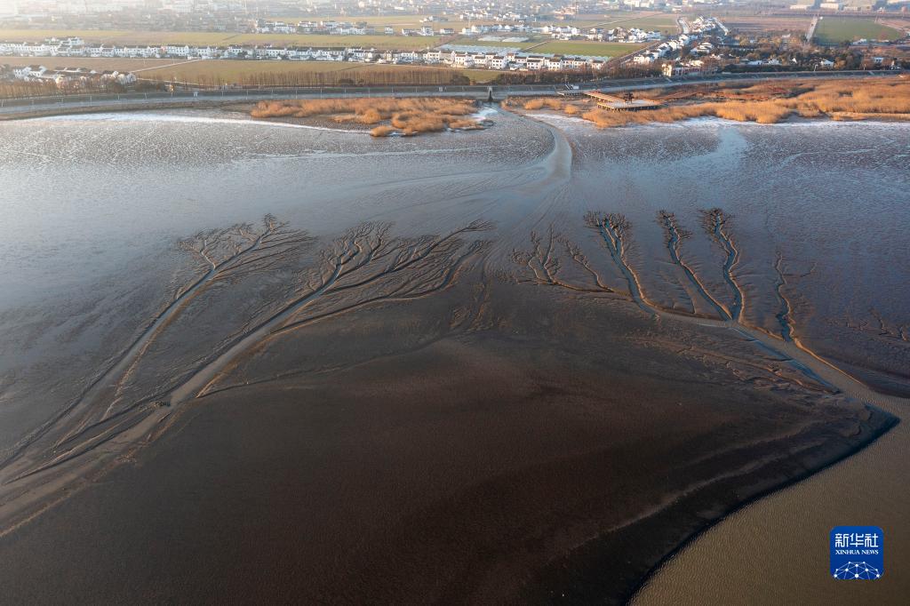 日前,長江張家港灣段出現(xiàn)“潮汐樹”自然景觀。這是江水受潮汐影響在上漲和回落過程中形成的一種沉積地貌。