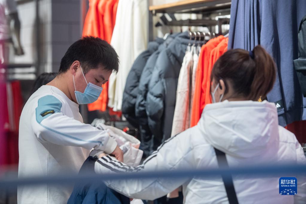 12月23日,在位于重慶解放碑商圈主打運動品牌的重慶八一廣場內,市民游客選購商品。