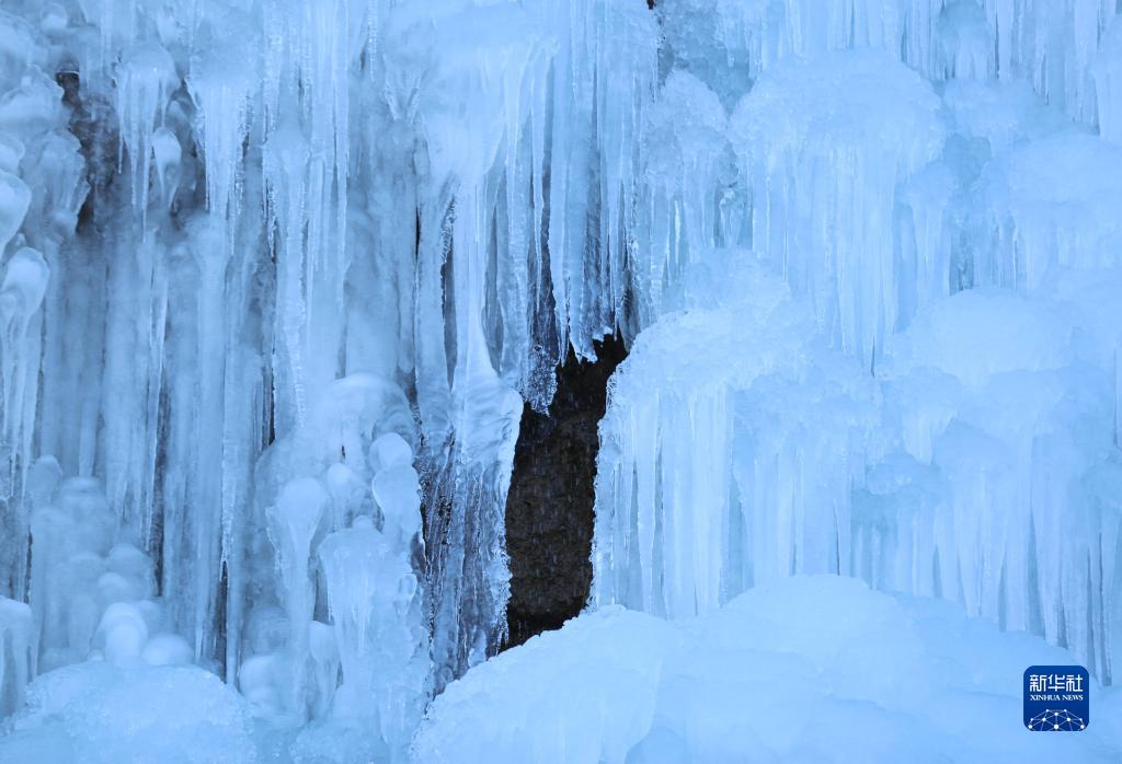 寒冬時節,山東省臨沂市沂南縣香山湖畔的崖壁上出現冰瀑景觀。形態各異的冰瀑、冰掛、冰柱晶瑩剔透,蔚為壯觀。