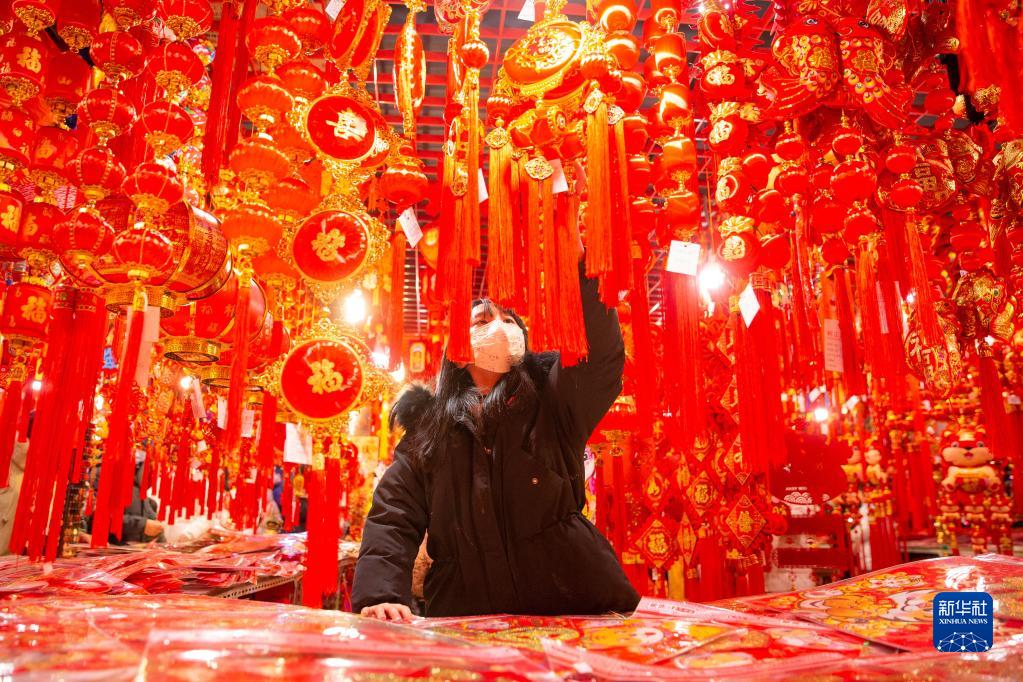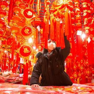 1月28日,市民在南京一家商貿城內選購春節飾品。