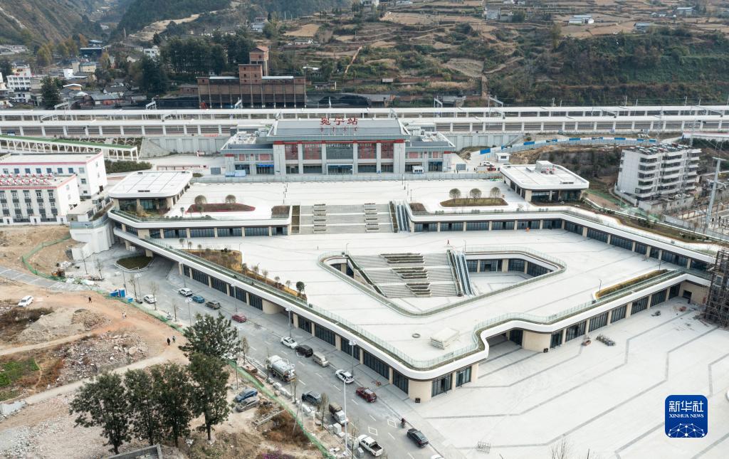 12月17日拍攝的新成昆鐵路冕寧車站(無人機照片)。